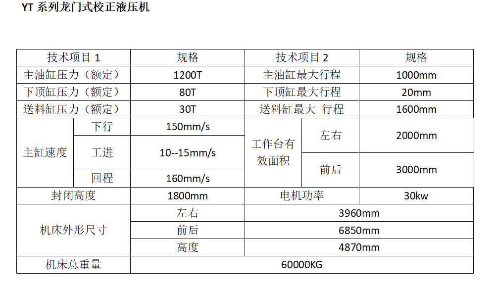 技術參數 型號 技術規格 單位 YT-100 YT-200 YT-300 YT-400 YT-500 YT-650 YT-800 YT-1000 公稱壓力 KN 1000 2000 3000 4000 5000 6500 8000 100...